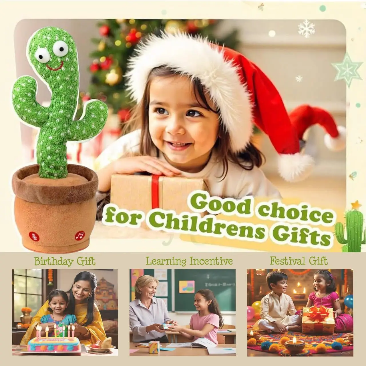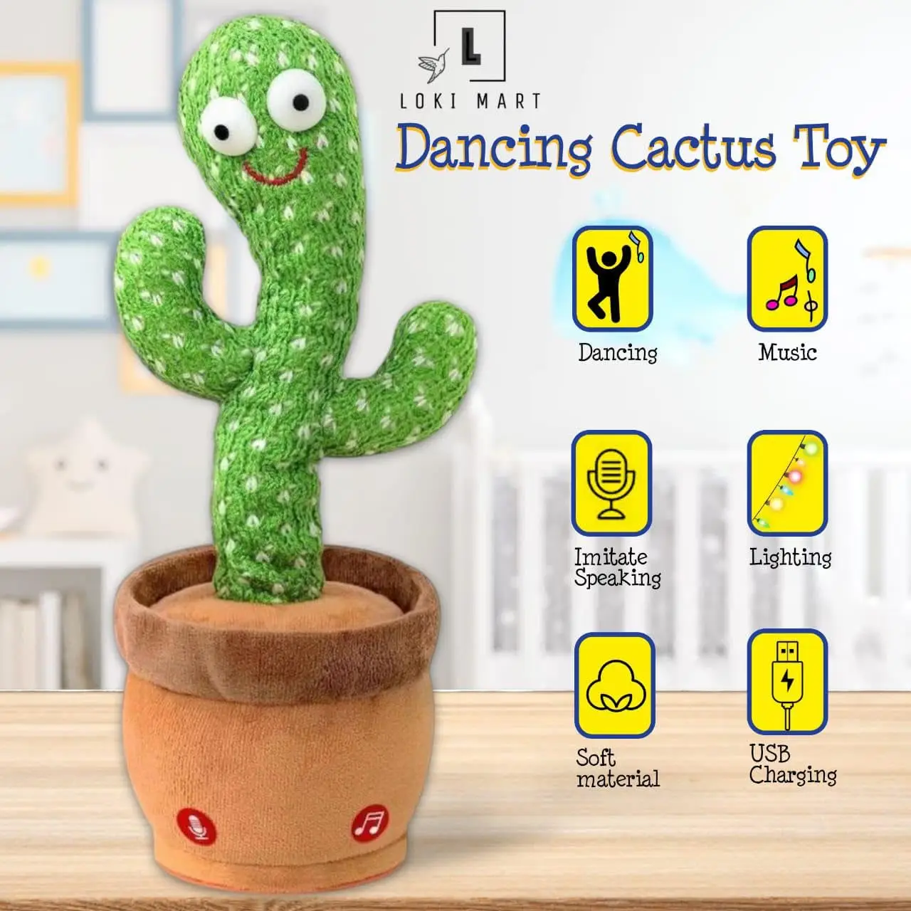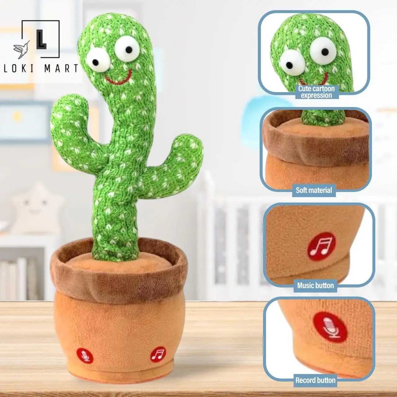 • 🌵 Interactive Dancing & Talking Toy – Repeats what your child says, sings songs, and dances with fun moves to entertain and engage.